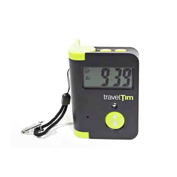 במקרה של TravelTim המוצג כאן, מדובר בשעון מעורר נייד הפועל עם סוללות, פשוט מאד להפעלה, שמאפשר השכמה באמצעות רטט מובנה בשעון (להניח מתחת לכרית), או צלצול או הבזק אור.