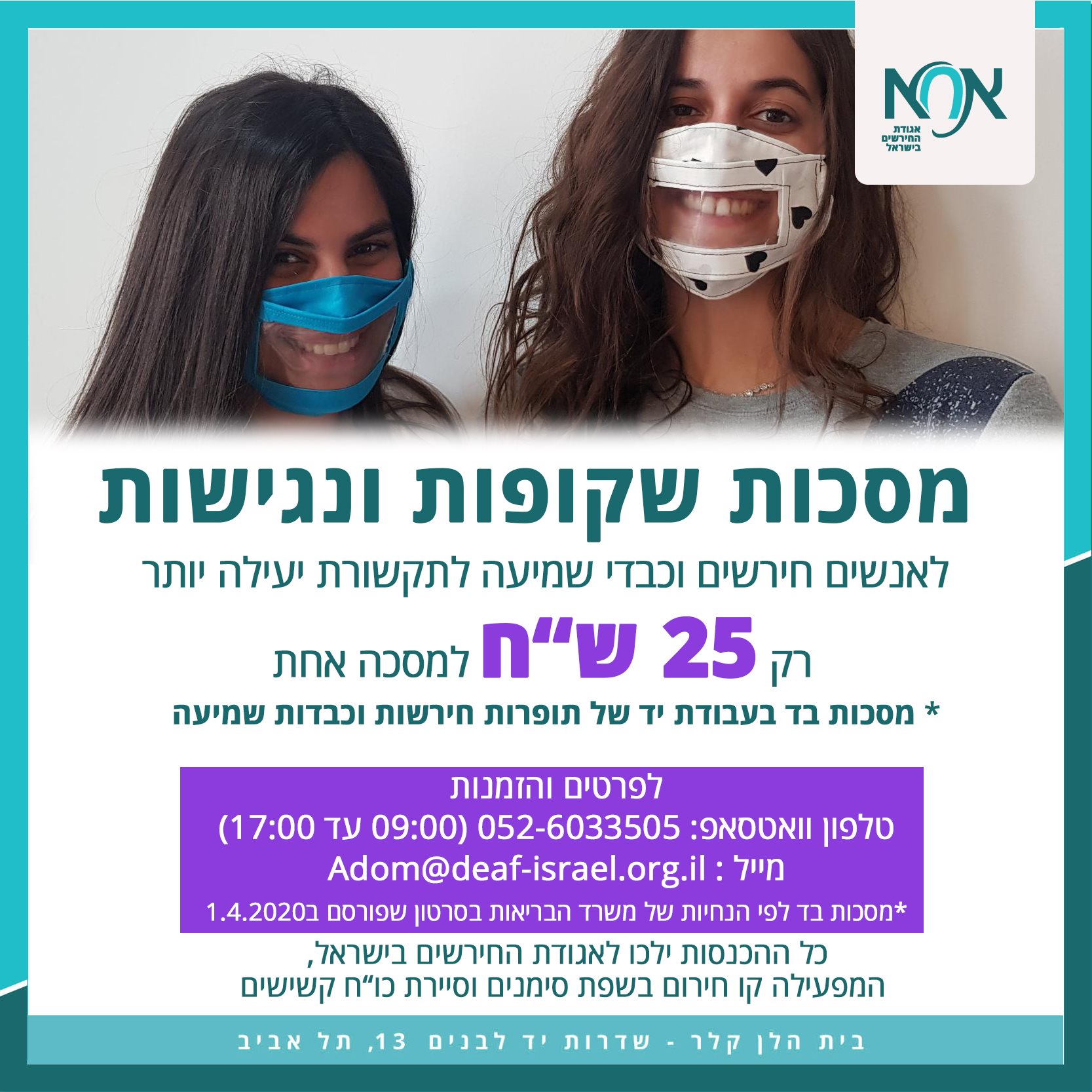 😷 מסכה שקופה שנמכרת על ידי אגודת החירשים.