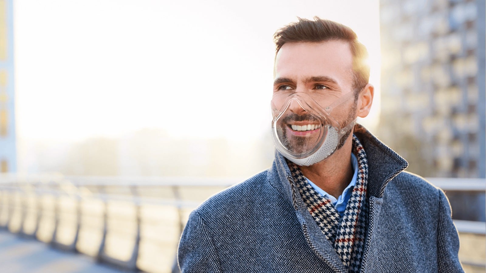 😷 מסכה שקופה Clarity Mask המשווקת על ידי חברת פרוטקטיל בקישור.