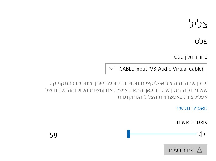 15. אם הנכם משתמשים בתוכנית עם הגדרת רמקול/התקן פלט משלה, וודאו שהיא משתמשת ב"CABLE Input" בהגדרת הפלט.